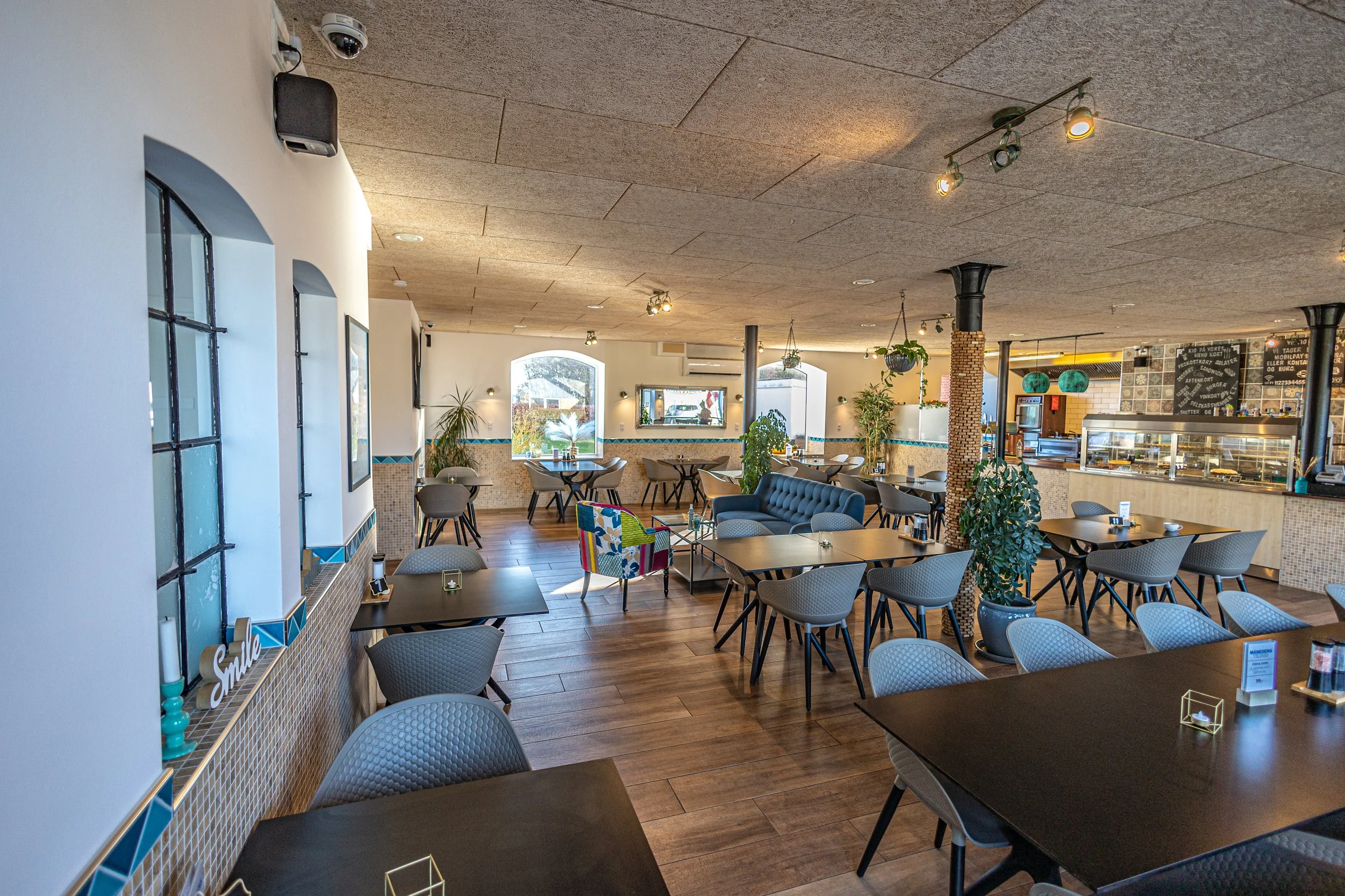 Caféen byder jer velkommen i hyggelige omgivelser og med et menukort med lidt til enhver smag. Vi bruger friske råvarer af høj kvalitet, til tilbedredelse af madden, som vi servere. Vi har brunch, frokost, aftenkort, dessert og om sommeren kan. Desuden tilbyder vi også brunch-buffet til større forsamlinger og vi har lækker smørrebrød/snitter ud af huset.